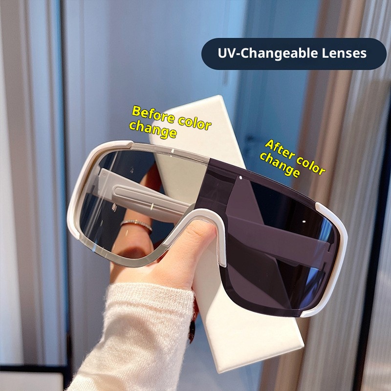 Brand:Delong,Item Number:JK89 discoloration,Lens Color:White,Frame Color:Black,Transmission Ratio Classification:Category 2/Sun Visor,Is it polarized?:No,Glasses Structure:Full Frame,UV Protection Level:UV385,Applicable Scenarios:Sun Protection, Fishing, Travel, Cycling, Fashion Outfit, Driving, Stage Performance, Party Gathering,Trendy Elements:Eyes,Year/Season of Release:Autumn 2025,Is it exclusively for cross-border export supply?:yes,Does it support prescription lenses?:No,Color:Black frame changes color, white frame changes color,Origin:Taizhou,Style:Unique, Unisex Style, INS Style, Internet Celebrity Style,Lens Material:PC,Applicable Gender:Universal,Frame material 1:PC,Glasses Style:Irregular Mirror,Style Classification:Unique Fashion Trend,Main sales regions:Africa, Europe, South America, Southeast Asia, North America, Northeast Asia, Middle East,Frame Material:PC,Trendy Elements Classification:Facial Features/Expressions