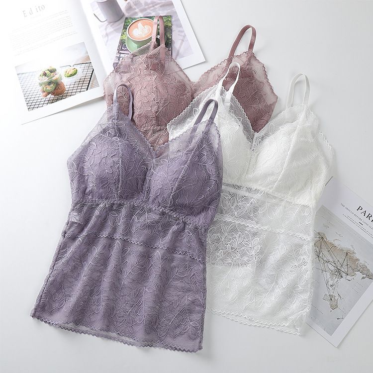 2024 Yeni Dantel Atlet Kadınlar İçin Göğüs Pedli Kablosuz Sütyen Seksi Askısız Üst