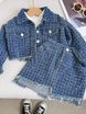 Bebek Kız İlkbahar ve Sonbahar Kolej Tarzı Uzun Kollu Günlük Takım Elbise 2025 Kız Xiaoxiang Tarzı İş Giyim Ceket Kısa Etek İki Parçalı Takım Elbise