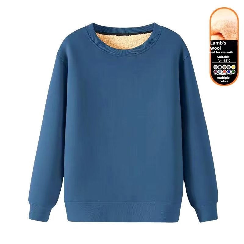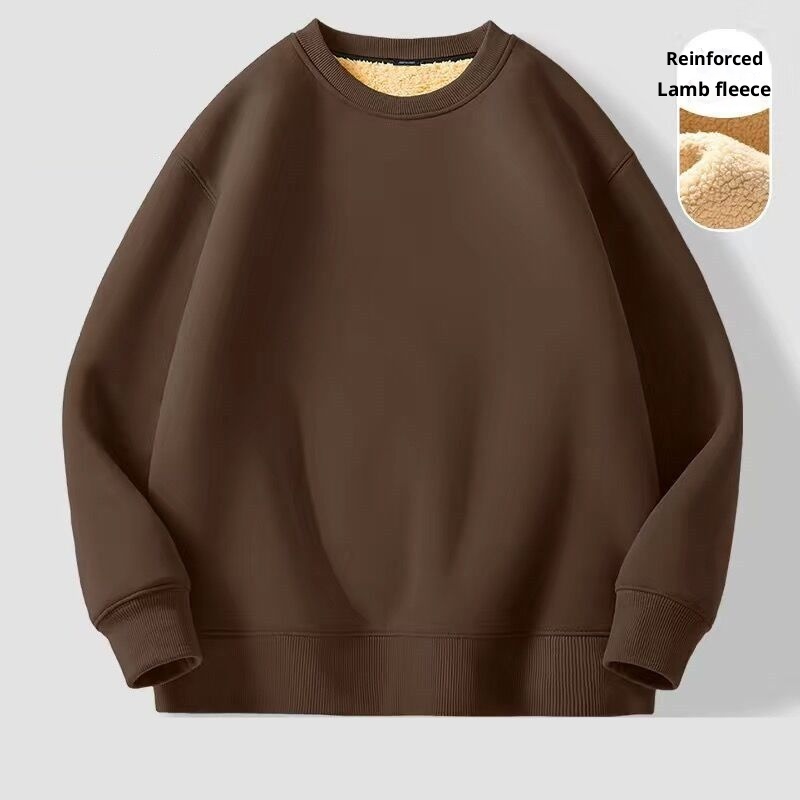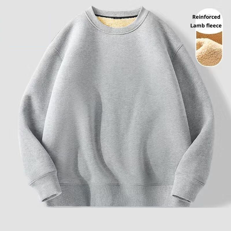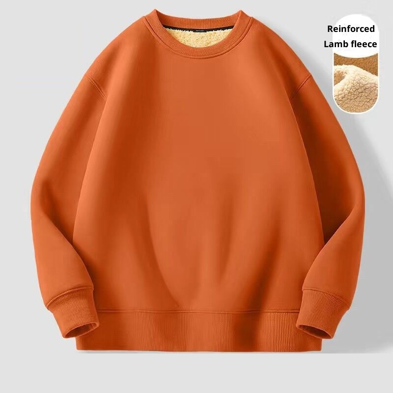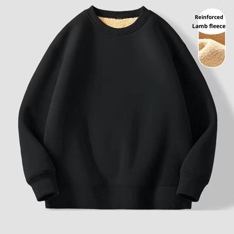 Erkekler İçin Sonbahar ve Kış Polar Astarlı Sweatshirt, Kalınlaştırılmış Stil, Öğrenci Çift Giyim, Kuzu Yünü Sıcak Yuvarlak Yaka