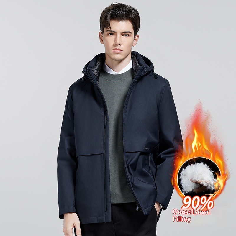 Cold-resistant Level:Regular level -20℃~-5℃,Material function:Waterproof, windproof, cold-resistant,Fluffiness:600,Product Source Category:In Stock,Brand:DIZUOHAUG,Item Number:YR10797TS,filling material:White Goose Down,Fleece Content:86%~90%,Design:Inner liner,Length of clothing:Mid-length 65cm<Length≤80cm,Collar Style:Stand Collar,Front placket:Zipper,Thickness:Thickened,Pattern:Solid Color,Style:Business Professional,Bargain Category:Business gentleman over 35 years old,Error margin:1-2cm,Is it in stock?:yes,Inventory Type:Complete order,Down Fill Power:80,Suitable for everyone:Youth,Lining Composition:Polyester Fiber Dacron,Lining Material Composition Content:100,Fabric Name:Synthetic Blend Fabric,Main fabric composition:Polyester Fiber Dacron,Content of the main fabric components:100,Applicable Scenarios:Everyday,Color:Black, navy blue,Size:M recommended weight is 45kg-60kg kg, L recommended weight is 60kg-70kg kg, XL recommended weight is 70kg-80kg kg, 2XL recommended weight is 80kg-87.5kg kg, 3XL recommended weight is 87.5kg-97.5kg kg,Suitable for the season:Winter,Year/Season of Release:Autumn 2025,Functionality:Removable Inner Liner,Craftsmanship:Non-iron treatment,Design details:Multi-pocket,Is it exclusively for cross-border export supply?:No,Original Design Source:No,Is there a quality inspection report?:No,Suitable age group:adult,Applicable Gender:Male,Product Category:Down Jacket