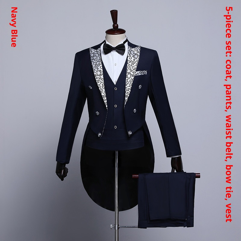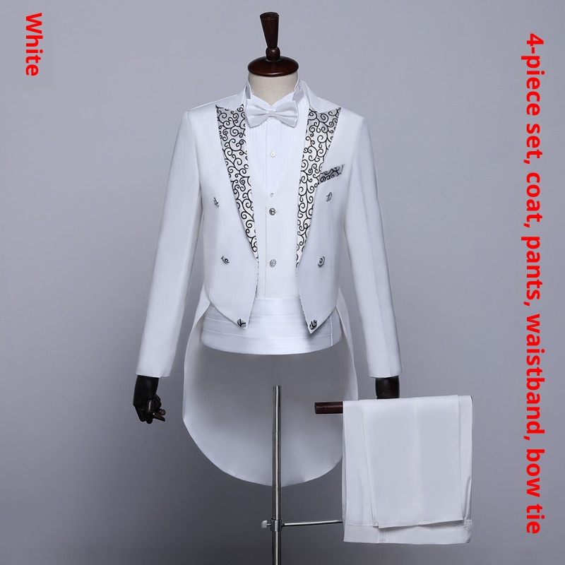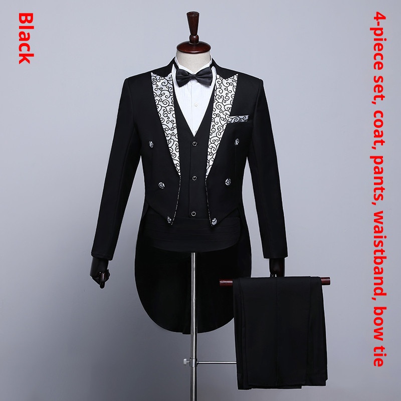 Erkek Saten Kumaş Frak Erkek Takım Elbise Slim Fit Resmi Giyim Yıllık Toplantı Sunucusu Magic Caz Dans Korosu Kostümü