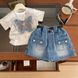 Üç Boyutlu Fiyonk Kız Kısa Kollu Tişört Takım Elbise Yeni Rahat Yaz Çocuk Kot Şort İki Parça Takım Elbise
