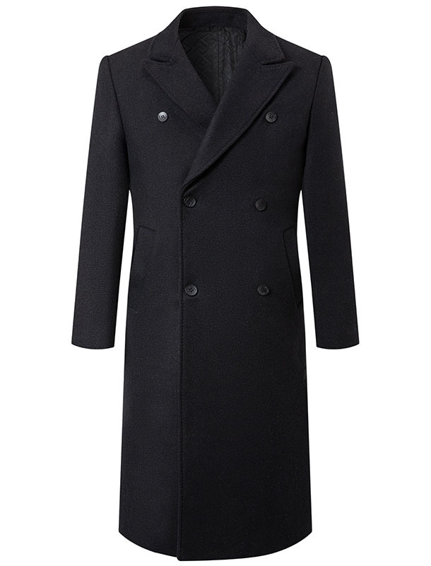 2024 Autumn/Winter Men's Woolen Fashion Plus Cotton Thickened Double breasted Suit Flip Collar Medium length Coat