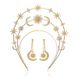 Çift Katmanlı Bohem Tarzı Güneş Ay Saç Bandı, Taç, Altı Köşeli Yıldız Küpeler, Gelinlik Aksesuarları