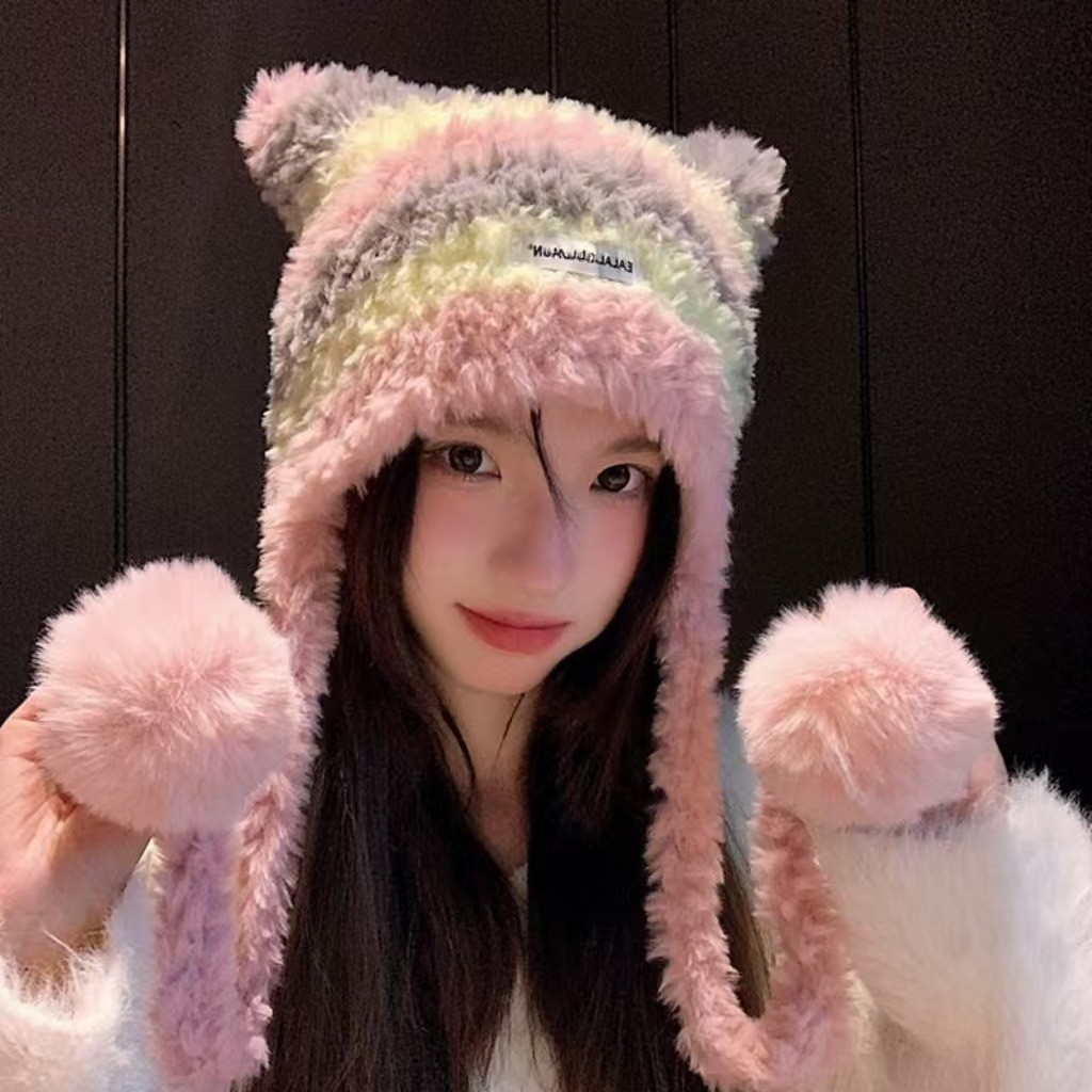 Kadınlar İçin Fair Isle Tarzı Örme Kışlık Vintage Çanta Sıcak Kulak Korumalı Yün Şapka
