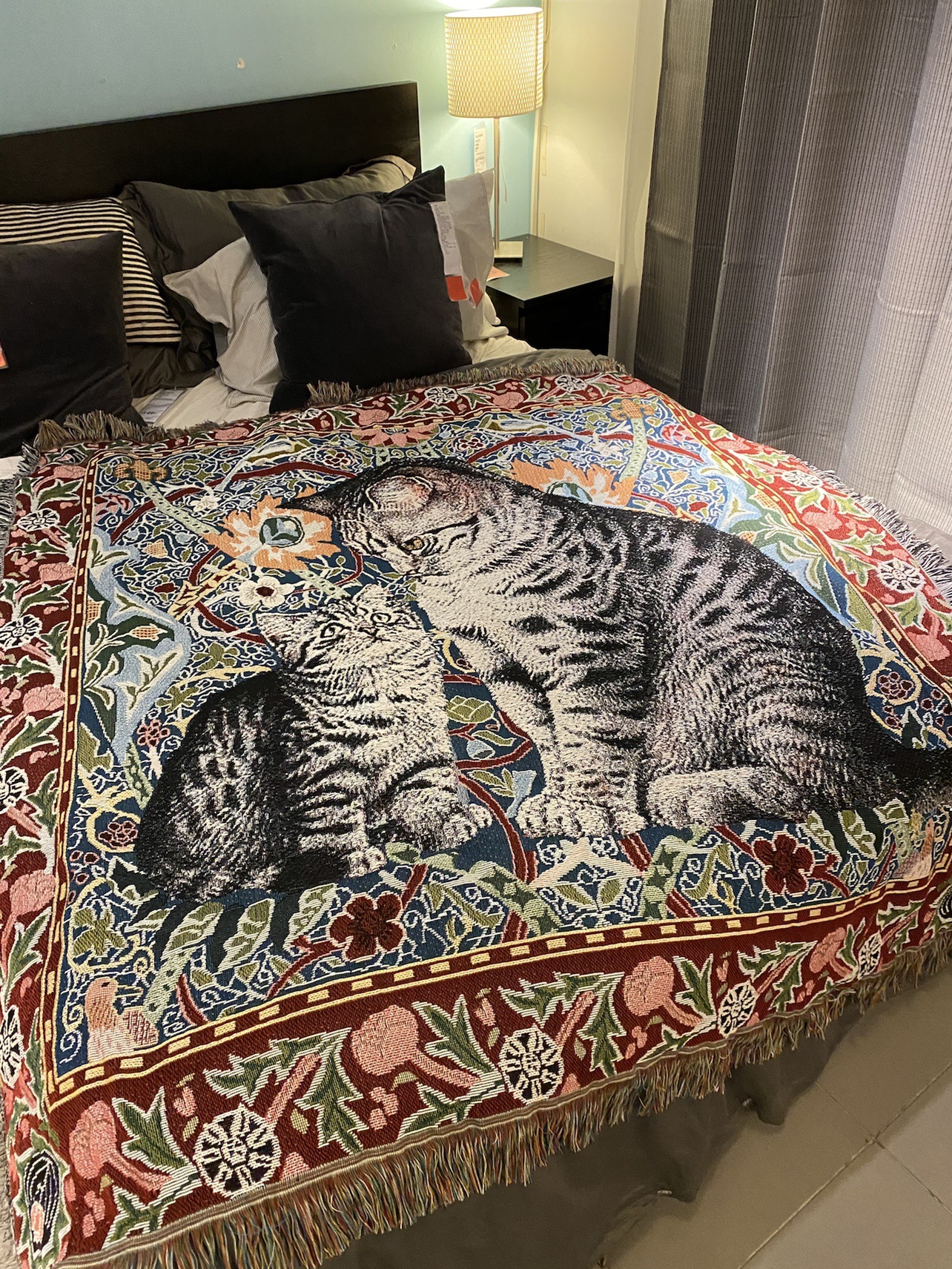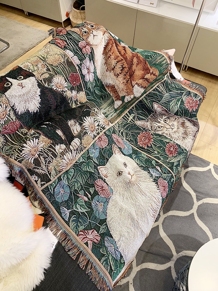 Cat Gift Old American Blanket Sofa Blanket Cover Blanket Knitted Cat Oil Painting Style