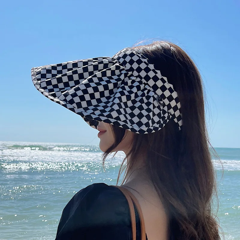 checkerboard gradient hat Summer lady Empty hats Sun Visor Hat Summer Wide Brim Sun Caps UV Protection Hat For women Beach hat