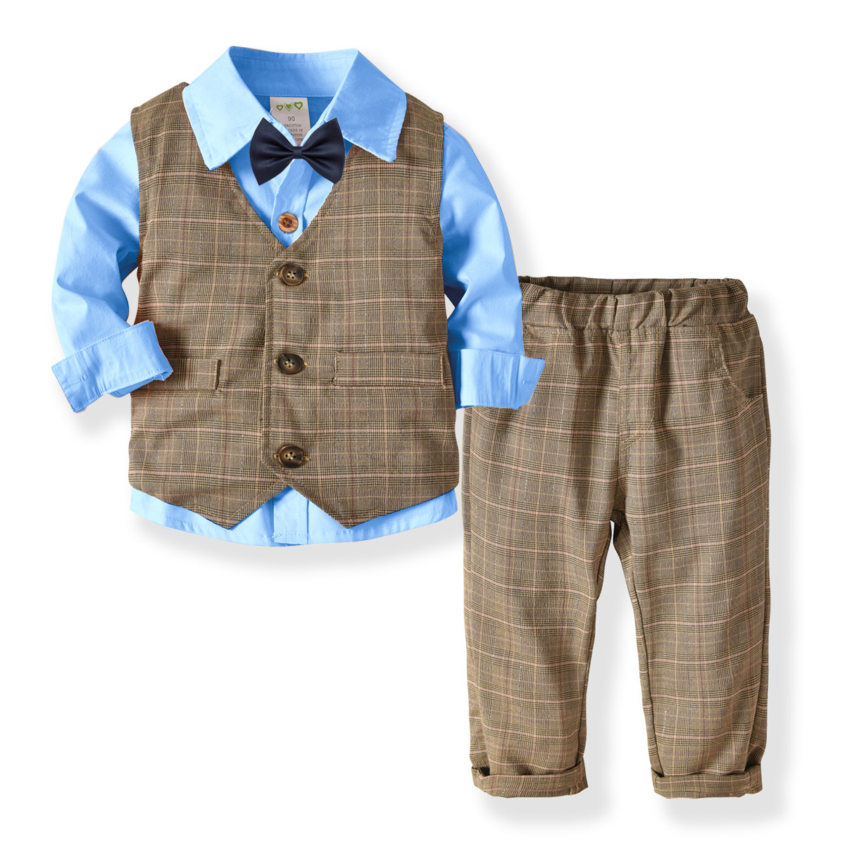 Çocuk giyim, erkek çocuk kollu gömlek, çift katlı yelek, uzun pantolon, papyon, beyefendi kıyafeti, bebek ziyafeti