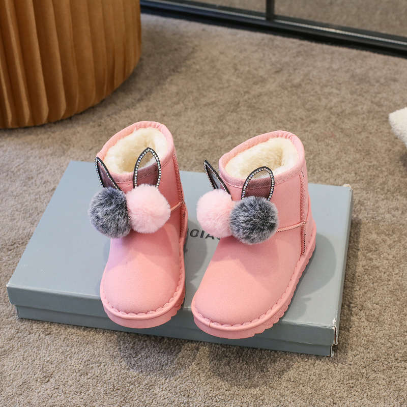 Children's shoes 2024 wool ball snow boots thick children's boots warm cotton shoes