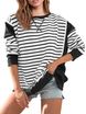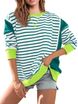 Kadın Çizgili Kontrast Renkli Uzun Kollu Tişört - Baskılı Yuvarlak Yaka Sweatshirt
