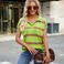 Kadın Giyim Yakalı Günlük Çizgili Kazak Yelek Kazak