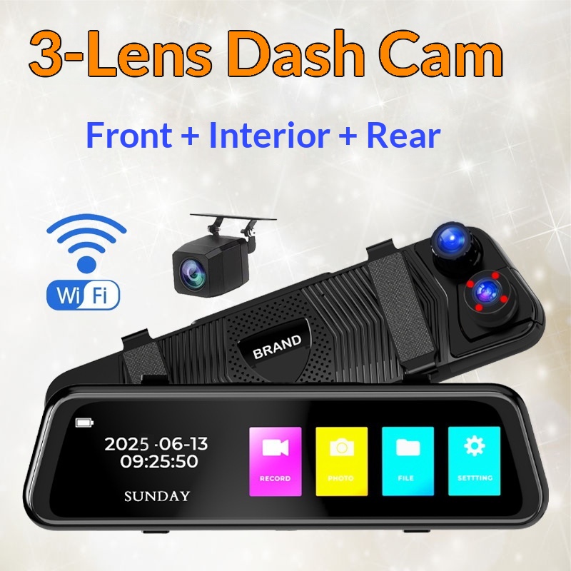 12 inç Panoramik 4 Kanallı Akışlı Araç Kamerası, WIFI, Tam Ekran, 4K HD, Gece Görüşü, Geri Görüş Görüntüsü