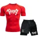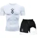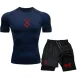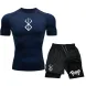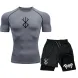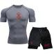 Erkek Kompresyon Spor Giyim Takımı Spor Salonu Kısa Kollu Tişört Spor Seti Goku 2 Adet Antrenman Koşu Şortu 2'si 1 Arada Fitness Eşofman Takımı