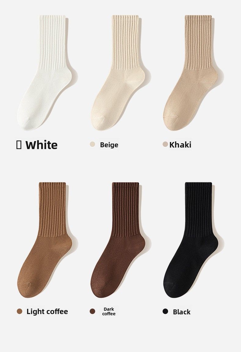 Erkek Çorapları Emici Pamuk Kalın İplik Orta Tüp Çoraplar Retro Japon Düz Renk Çok Yönlü Katlanabilir Çoraplar Sonbahar