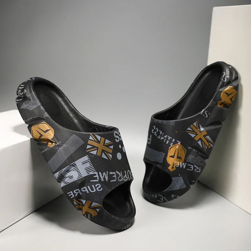 Erkekler için Kayma Terlikler Kalın Taban Dış Aşınmaya Sahip İç Mekan Dış Mekan Yumuşak Köpük Kaydırıcılar için Kaymaz Terlik