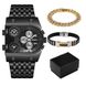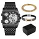 Erkekler için Çoklu Zaman Dilimi Paslanmaz Çelik Kuvars Saat, Büyük Işıklı Kadran ve Hediye Kutusu Ambalajı Çelik Bantlı Günlük Kuvars Saat