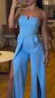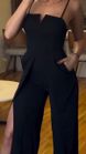 Fengins women's fashionable solid color V-neck pants with slit hem and suspender jumpsuit