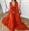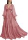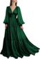 Kadın Giyim Retro V Yaka Kabarcık Uzun Kollu Pileli Uzun