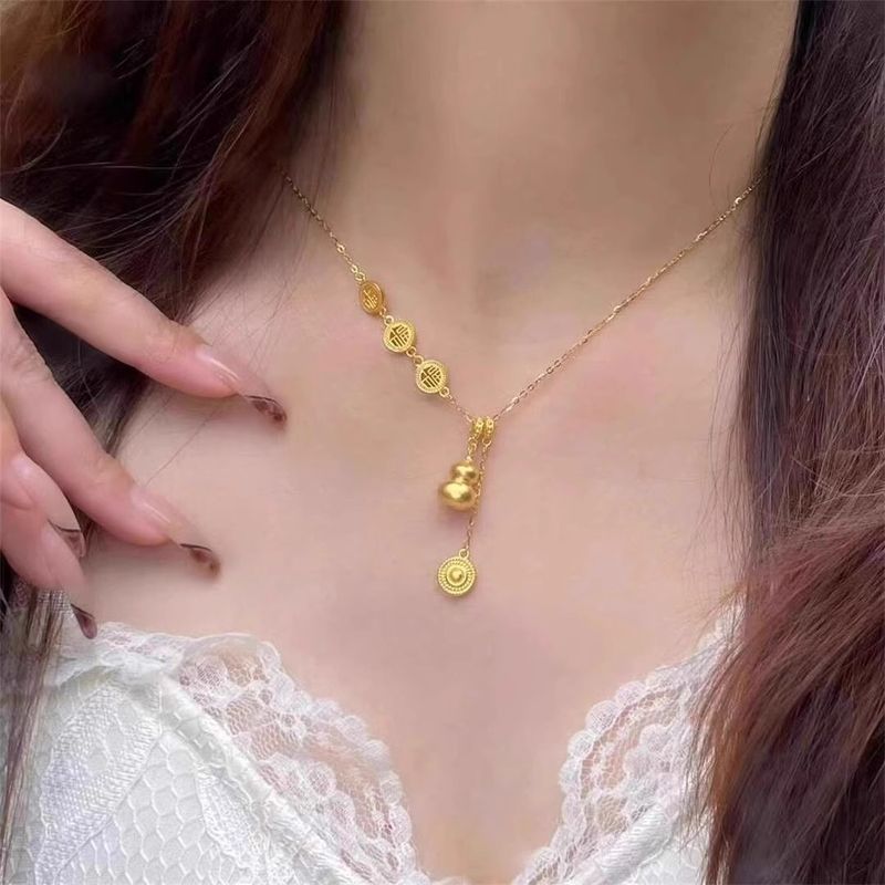 Gold Brushed Gourd Pendant Necklace for Women 2025 New Fortune Brand Clavicle Chain Light Luxury Niche Versatile Sweater Chain