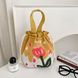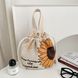 Knitted Bucket Bag for Women with Cartoon Pattern, Cute Handbag, Casual Versatile Drawstring Tote, Underarm Bag, Lunch Bag