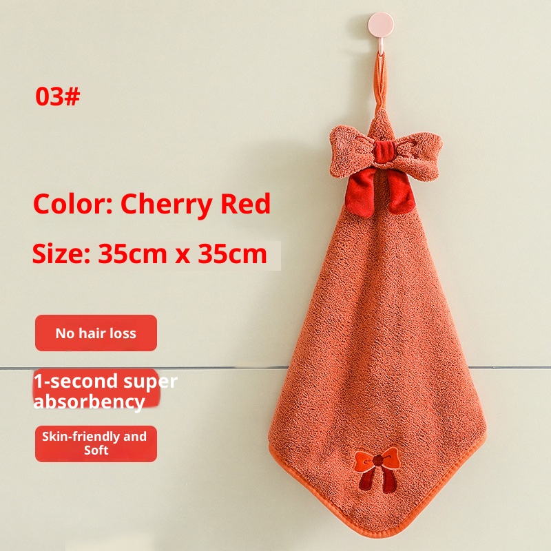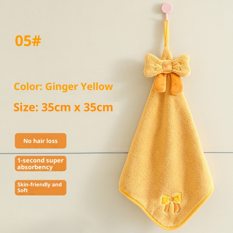 Material:Coral fleece,Item Number:ALCSJ19,Custom Processing:yes,Gram weight:30g included - 50g not included,Brand:Water Lily,Yarn Gauge:10 sticks,Craftsmanship:Embroidery, Hemming,Color:03#Bow cherry red, 05#Bow tie ginger yellow,Specifications Length*Width cm:35*35CM,Towels and Washcloths Subdivision:Hand towel