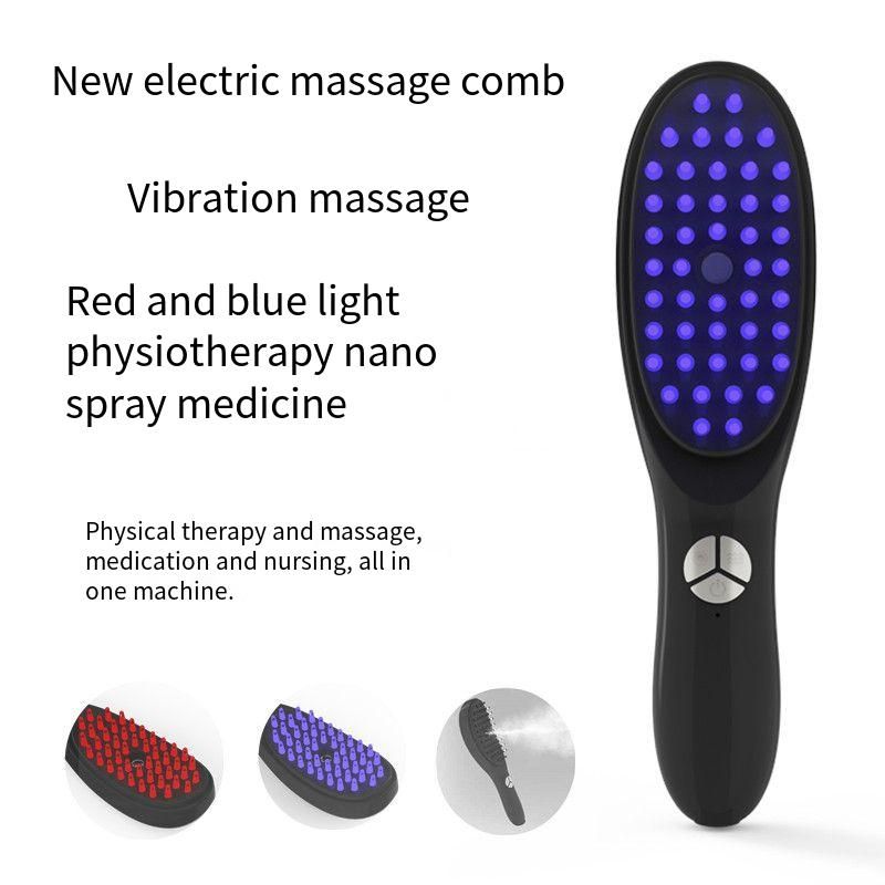 Masaj Kırmızı Mavi Işık Terapi Sprey Aplikatörü Saç Derisi Masaj Cihazı Negatif İyon Tarak Saç Bakımı