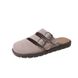 İngiliz tarzı kare kafa rahat kemer tokası içi boş katır sandalet kadınlar için 2024 dışında giymek için moda büyük boy kapalı kafa yarım terlik