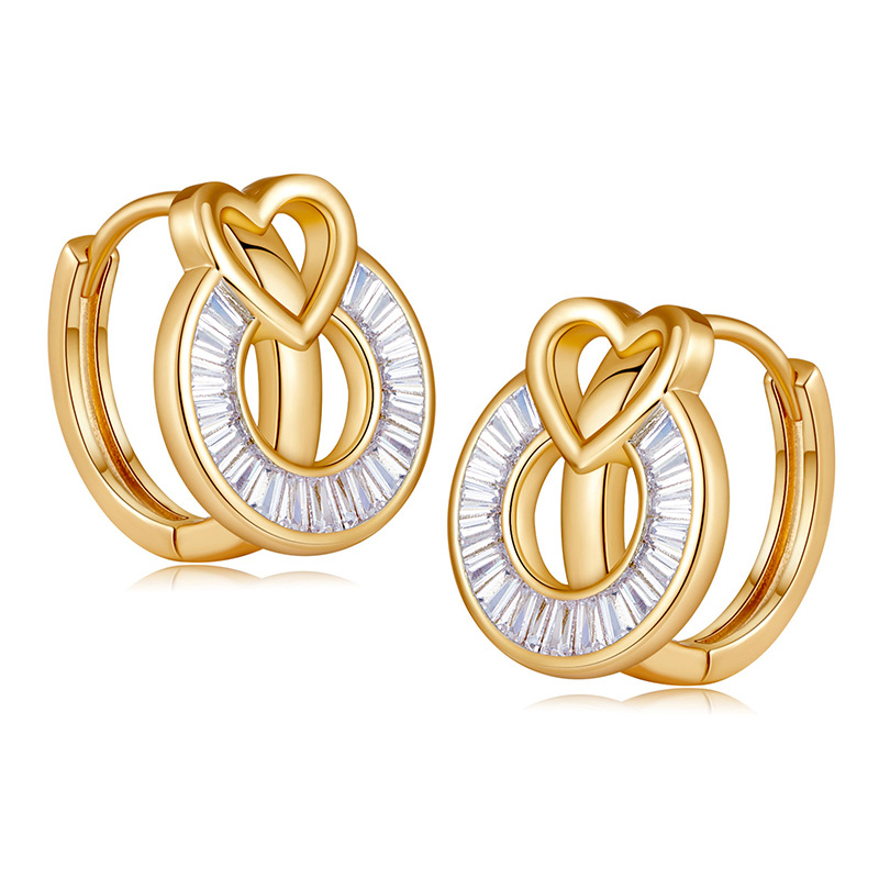 Tasarım niş küpe küçük yuvarlak kulak tokası bakır kaplama K gerçek altın renkli zirkonyum halka tokası aşk