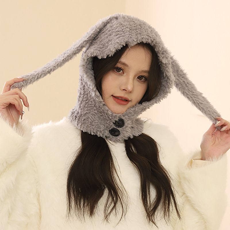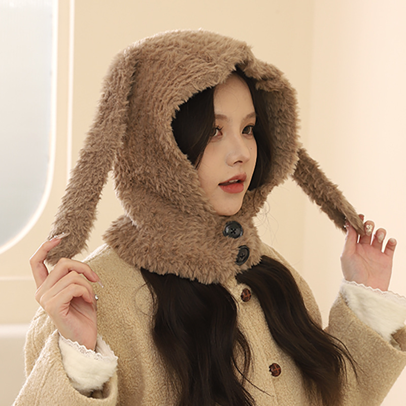 Sevimli Tavşan Kulakları Balaclava Kadın Sonbahar ve Kış 2024 Yeni Sıcak Kalın Yün Şapka Kulak Koruması_voghion.com