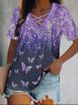 2025TEMU Spring/Summer Color blocked Cross V-neck Stripe Elegant Casual Short sleeved T-shirt for Women