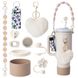 Sevimli Ponpon Anahtarlık ve Kalp Tılsımı ile Çiçekli Dokuma Pipet Üstü - 30oz/40oz Bardaklarla Uyumlu - Şık İçecek Kapağı Kapağı ve Pipet Kapağı
