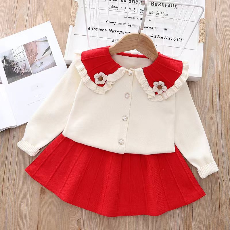 2022 Kadın Hazine Yeni Renk Sevimli Kız Örme Elbise İki Parça Kazak Takımı Etek