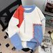 Benzersiz Patchwork Renk Bloklu Erkek Rahat Kişilik Düzensiz Örme Bol Tembel Stil Kazak