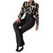 Kadın Giyim günlük kıyafet baskılı dik yaka uzun kollu gömlek üst geniş bacak pantolon iki parçalı set