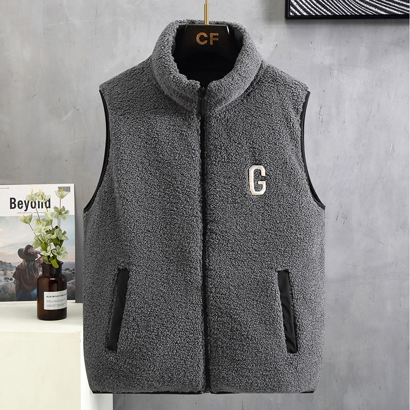 Vest men's plush jacket autumn and winter trend, wearing a thick and warm vest with a stylish and loose waistband