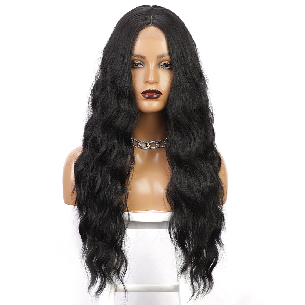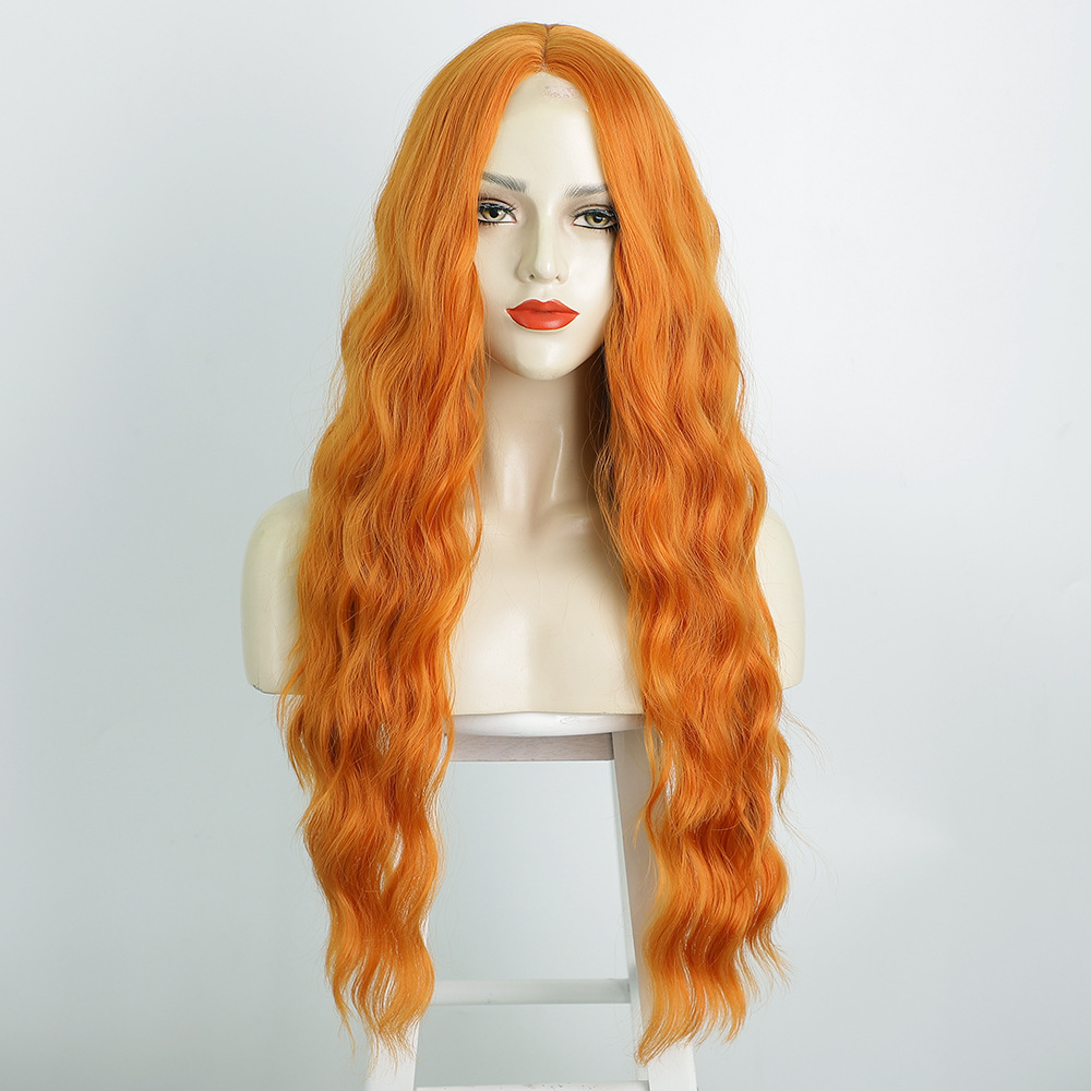 Peruklar Kadın Ön Dantel Ortadan Ayrılan Küçük Dantel Turuncu Renk Uzun Kıvırcık Saç Sentetik Peruklar